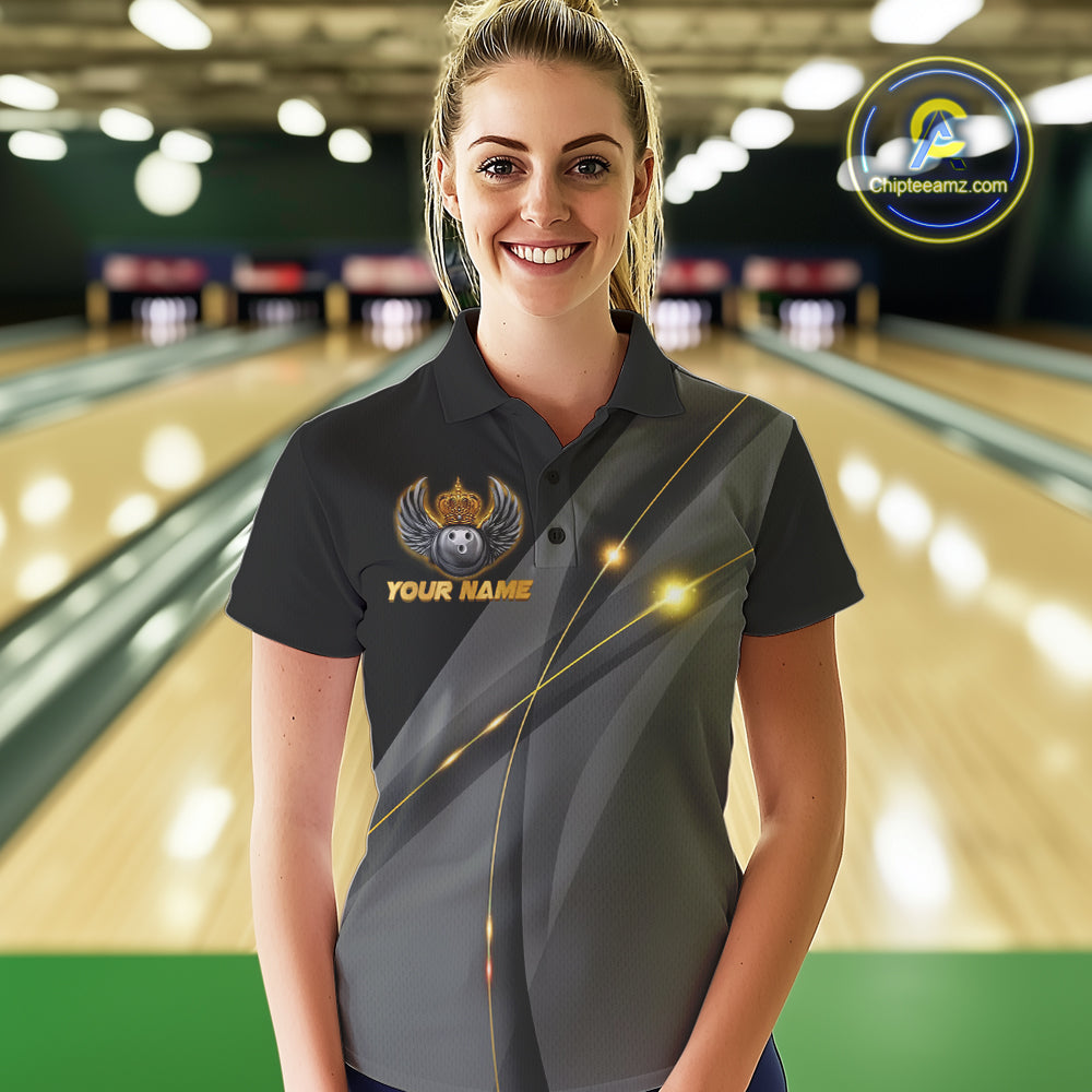 Black and Gold Crown Bowling ball wings Bowling Shirts For Women Custom Bowling Team Outfits NQS10549