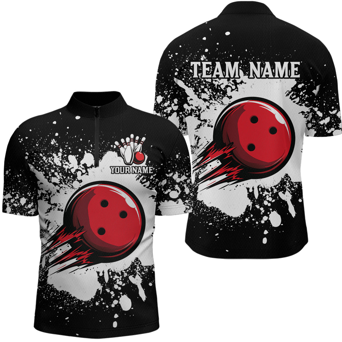 Black Bowling Jersey Men Women Custom Bowling Team Shirts Unisex Bowling Polo Quarter-zip CP32