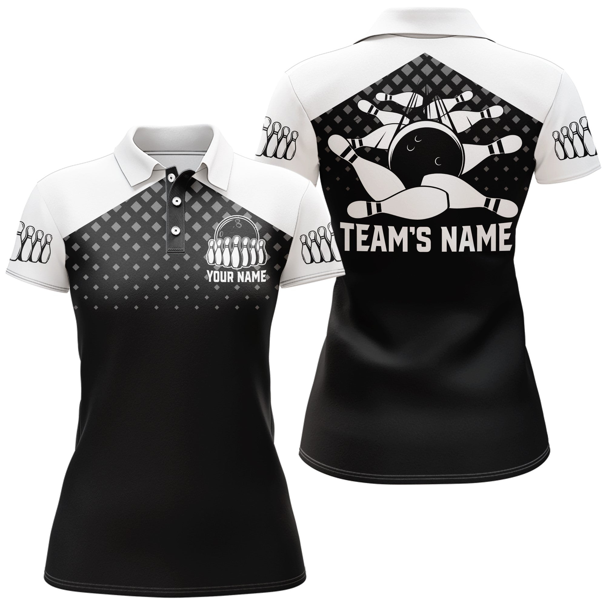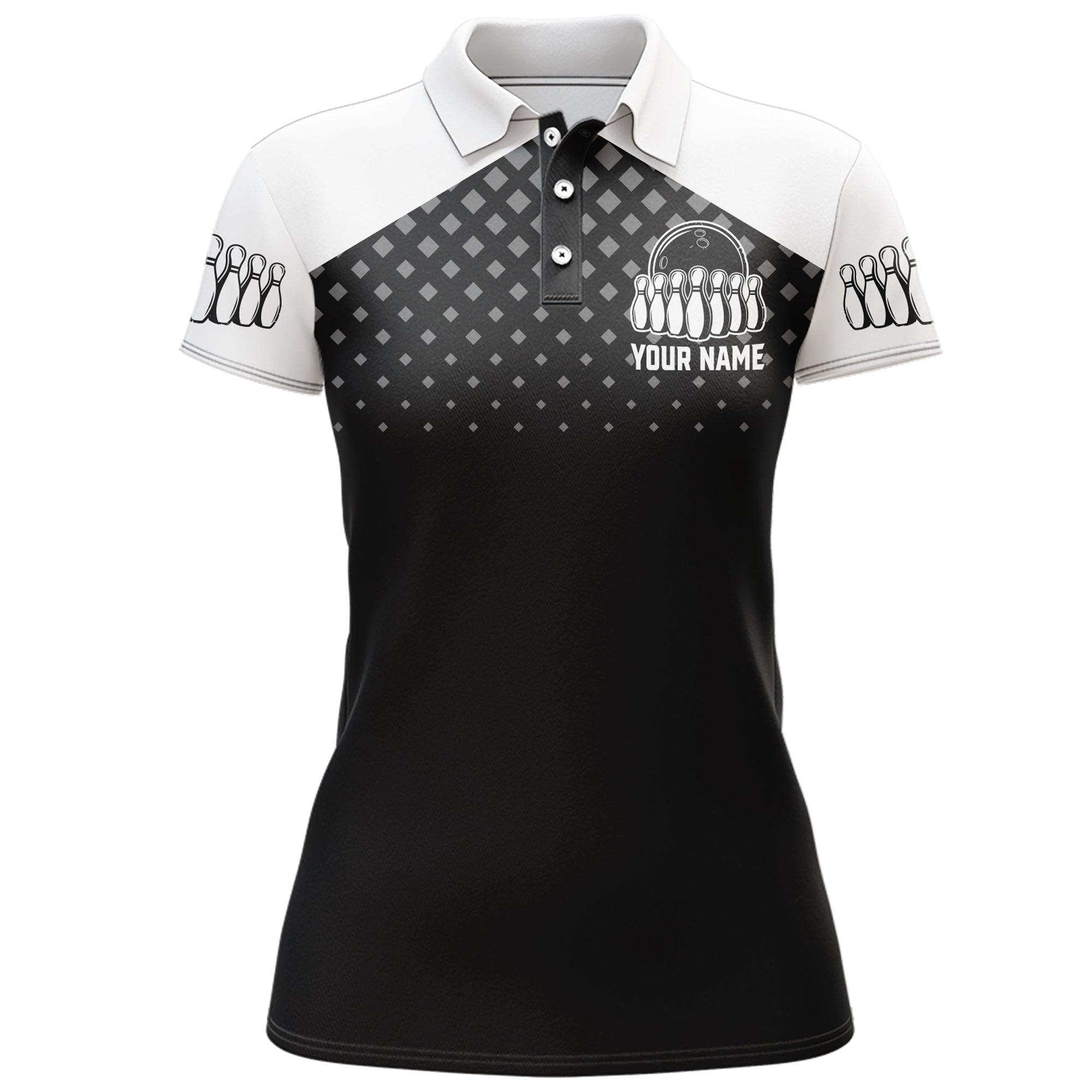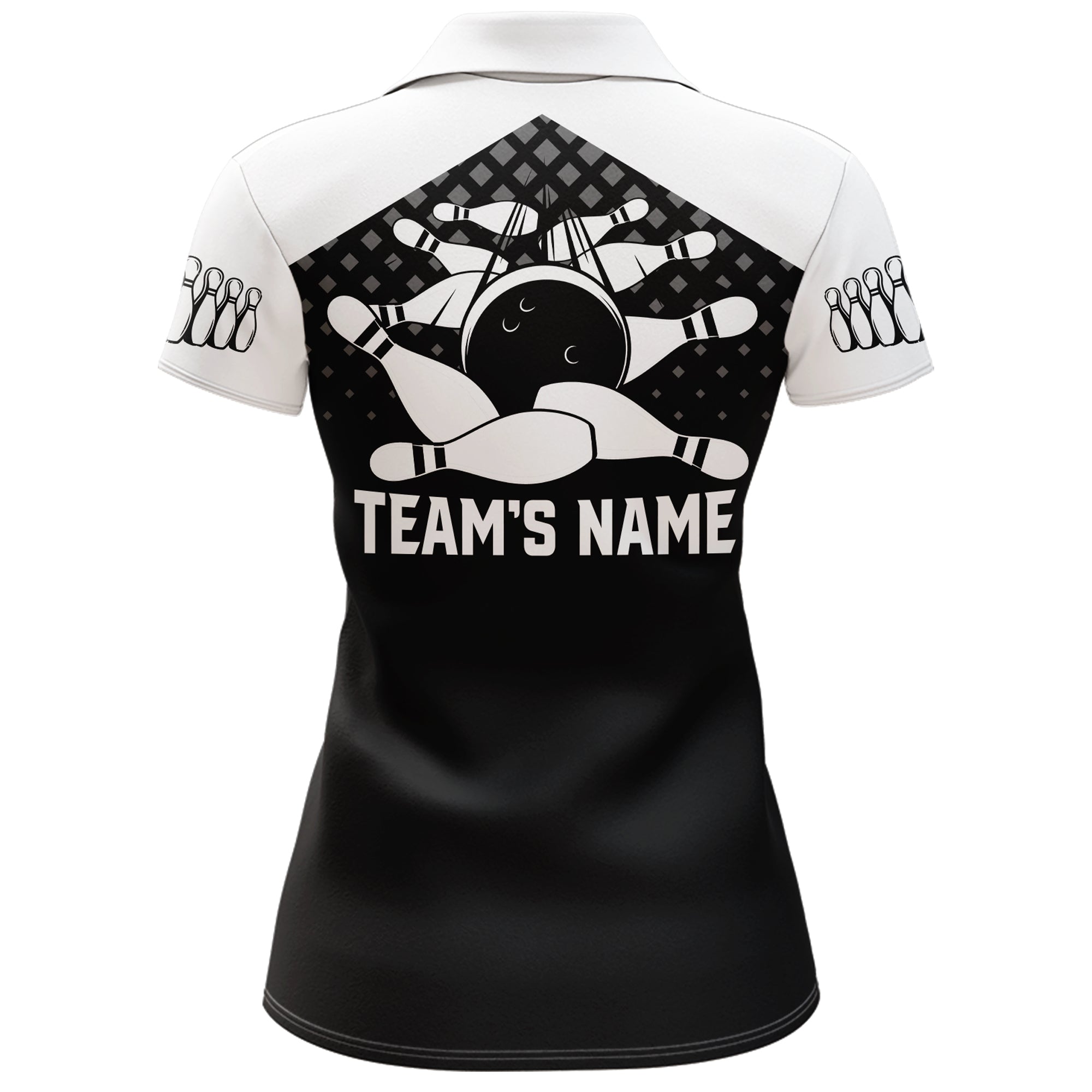 Black&White Bowling Polo Shirt For Women Custom Bowling Jersey Ladies Bowling Team Shirt BDT138