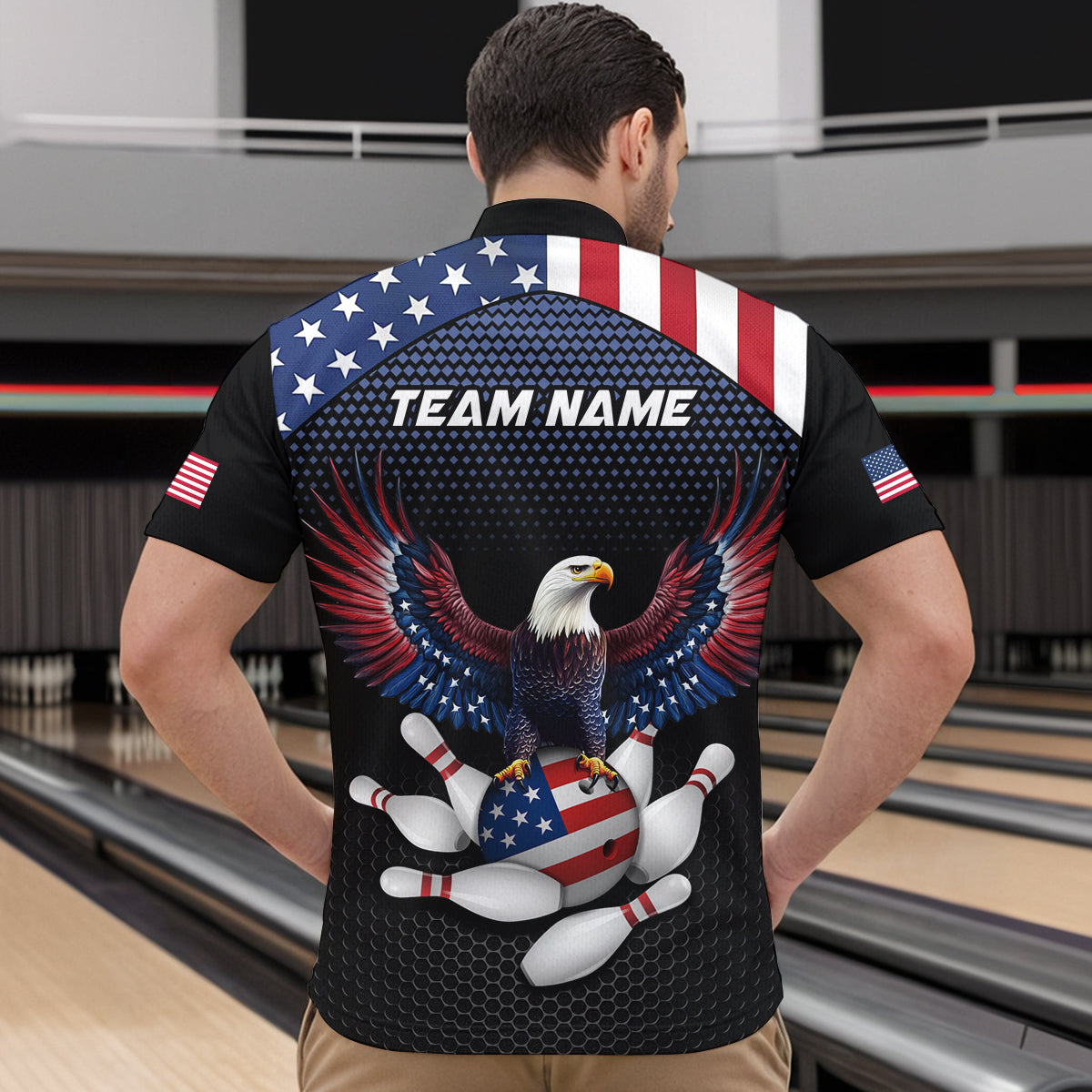 Custom Eagle Bowling Team Shirt American Bowling Quarter-Zip Jersey for Men Women QZT658