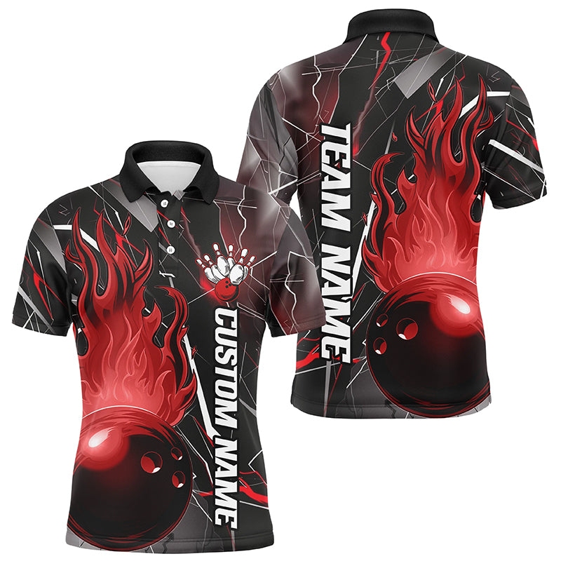 Custom Multi-Color Flame Bowling Ball Team Bowling Shirts For Men And Women, Bowling Tournament Jerseys For Bowlers IPHW6576