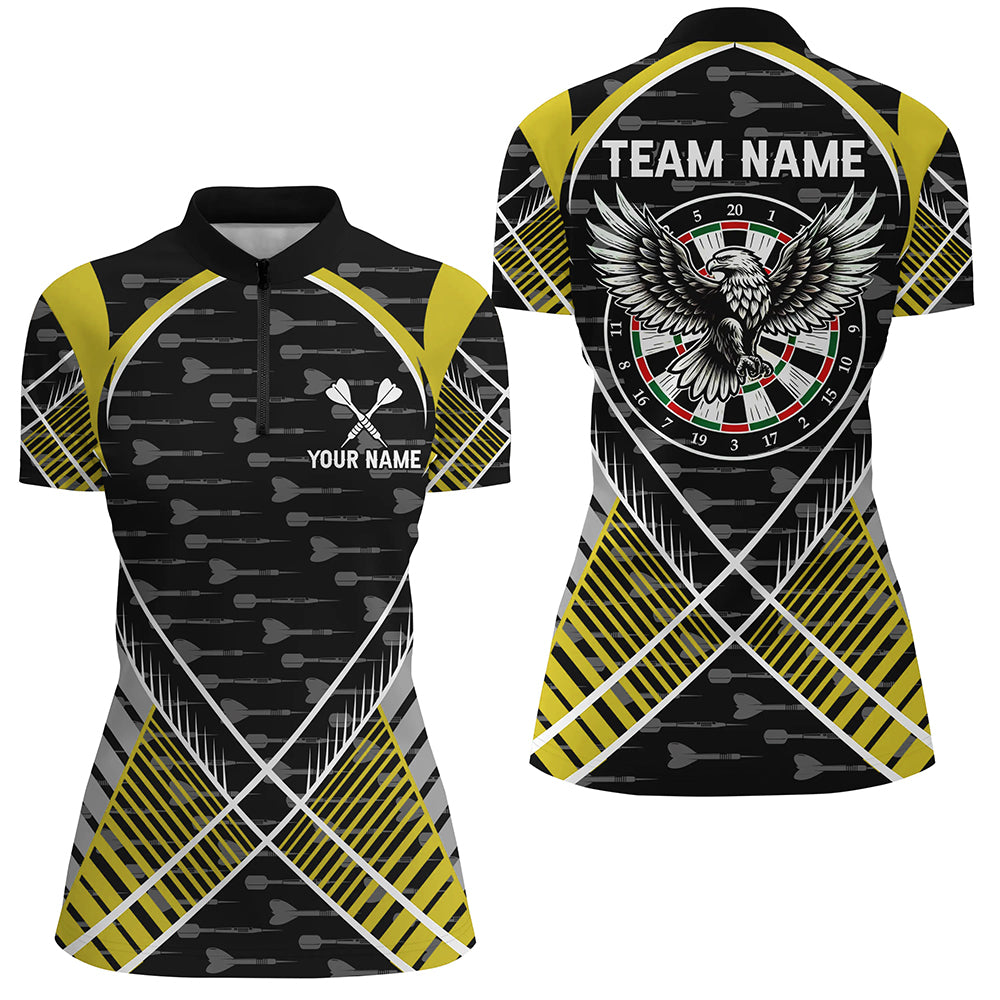Darts Eagle Arrow Pattern Custom Polo & Quarter-Zip Shirts For Women Best Darts Team Jerseys |Yellow TDM2203