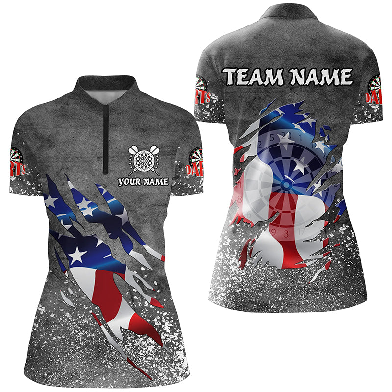 Personalized Grey Grunge American Flag Darts Shirts For Women Custom Patriotic Darts Team Jerseys TDM2282
