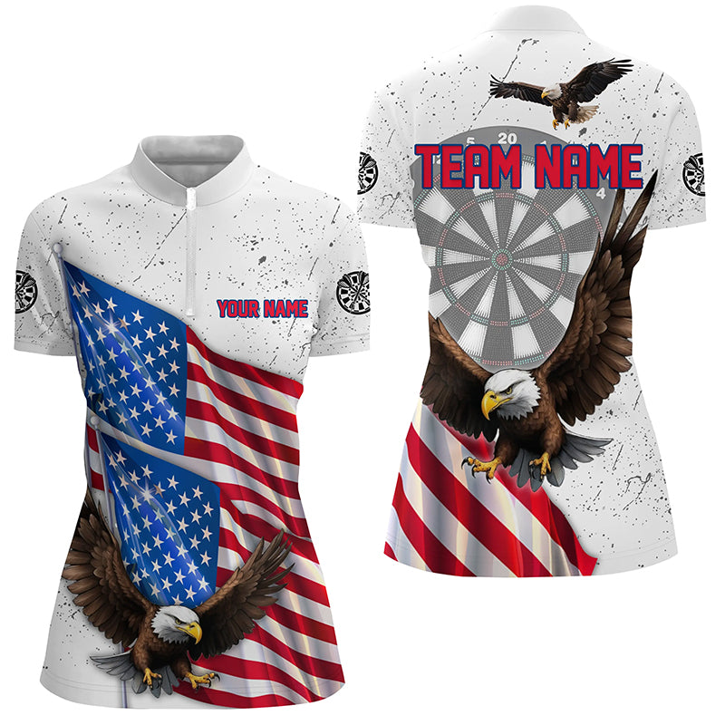 Personalized Eagle American Flag Custom White Grunge Darts Shirts For Women, Patriotic Darts Jerseys TDM2428