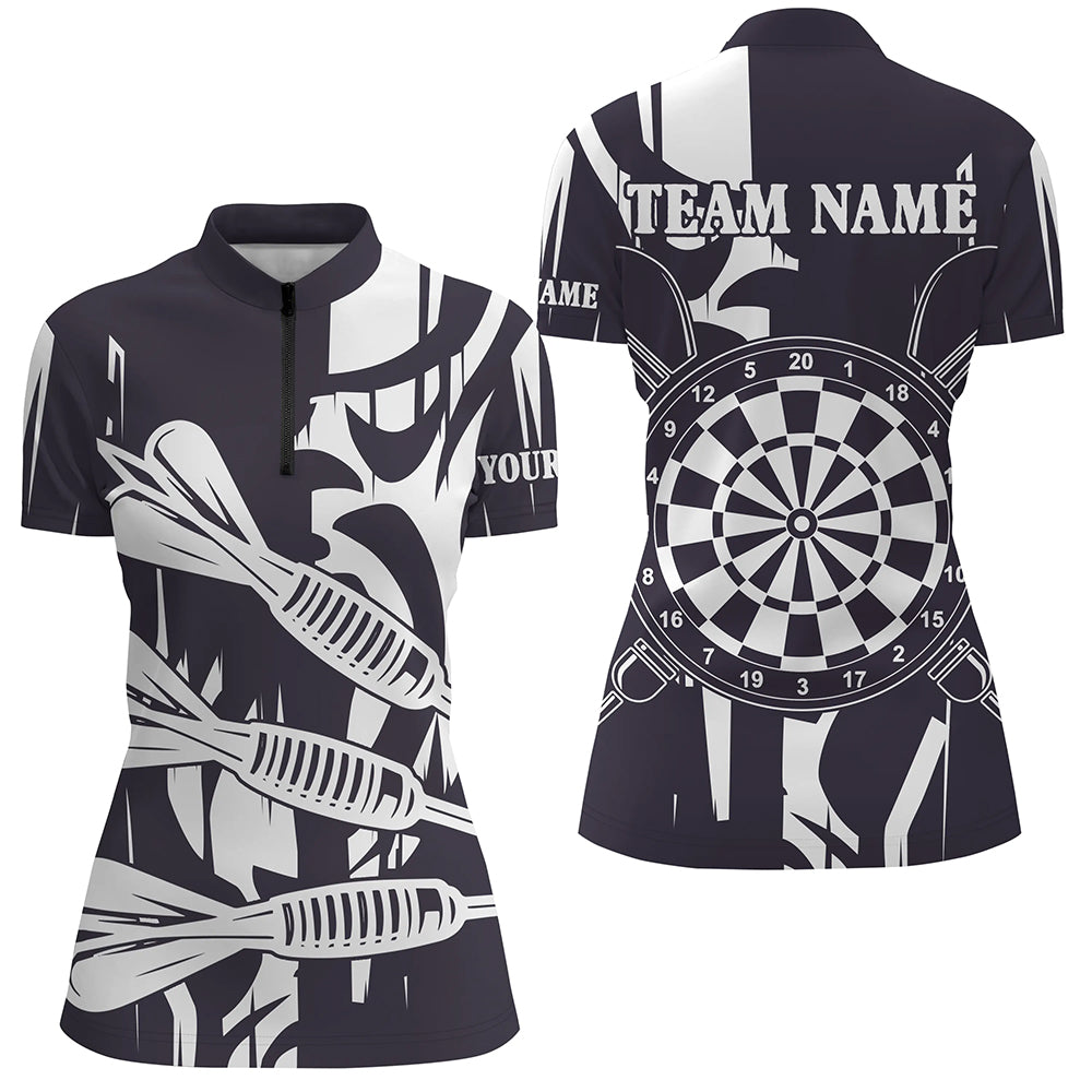 Black White Big Darts Arrow Custom Darts Shirts For Women, Best Darts Tournament Jerseys For Team TDM2506