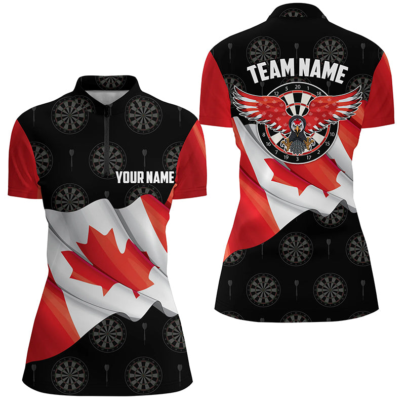 Waving Canada Flag Women Darts Polo & Quarter-Zip Shirt Custom Eagle Patriotic Darts Jersey Shirt TDM2509