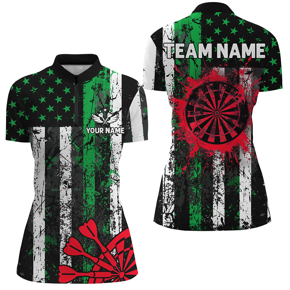 Custom Green And Red Grunge US Flag Women Dart Shirts, Patriotic Christmas Darts Team Jerseys TDM2850