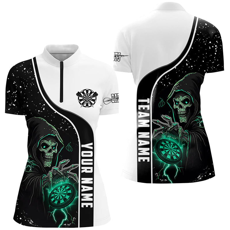 Turquoise Death Skeleton Darts Women Polo & Quarter-Zip Custom Darts Shirts For Team Darts Jerseys TDM2627
