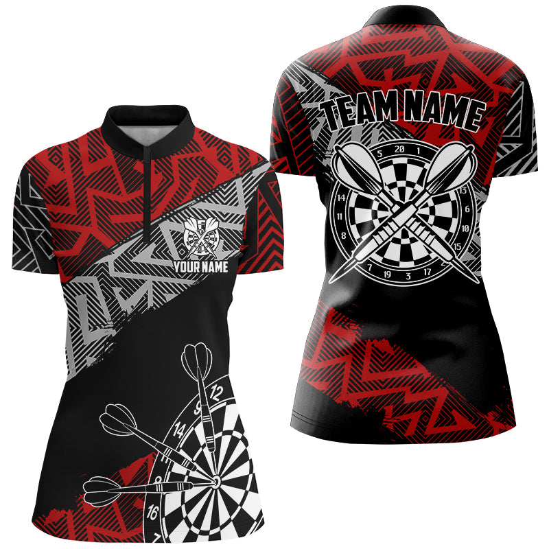 Custom Darts Shirts For Women Personalized Zig-Zag Pattern Dart Jerseys, Cool Darts Team Shirts |Red TDM2791