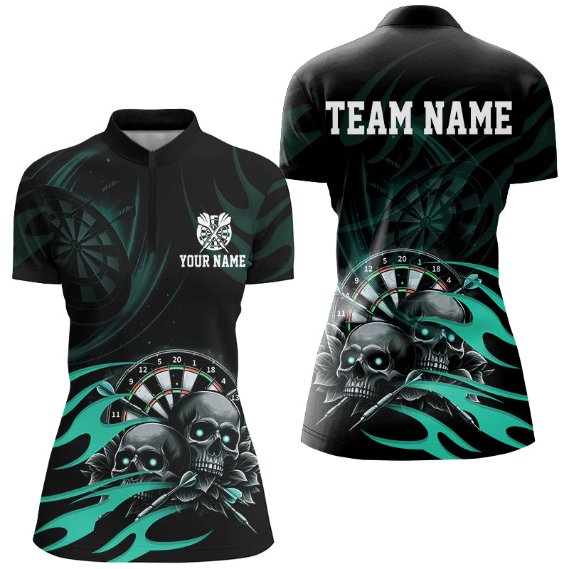 Funny Skull Turquoise Swirl Pattern Dart Shirts For Women Custom Dart Jerseys Dart Team Shirts TDM2836