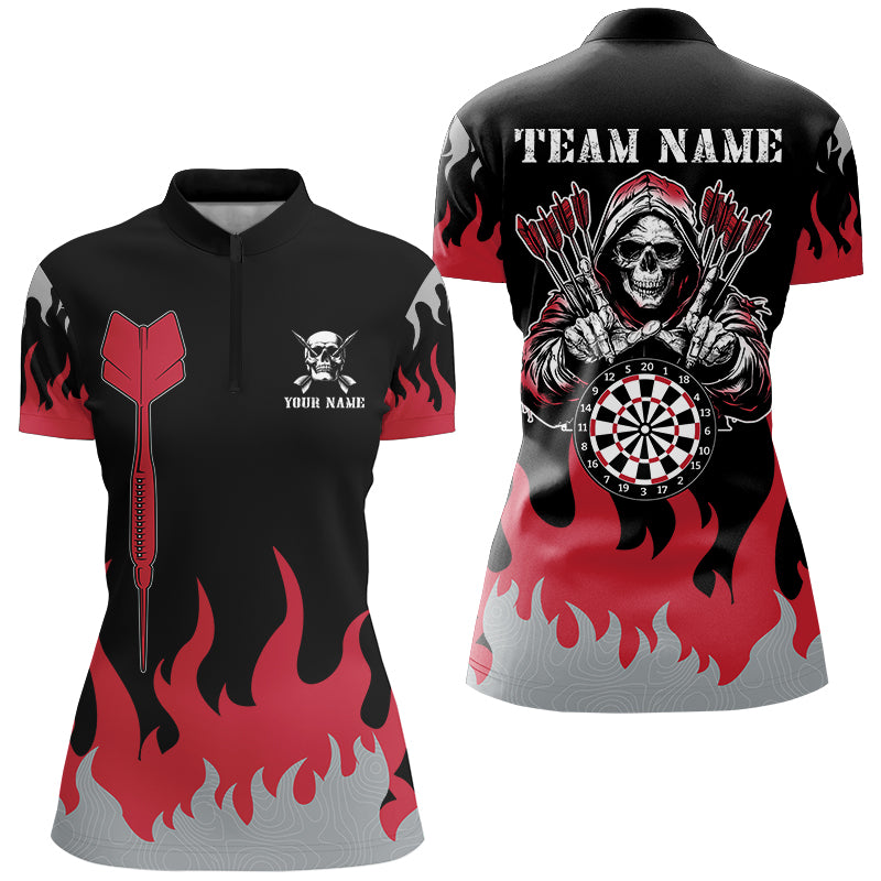 Personalized Dart Arrow And Flame Pattern Custom Women Dart Shirts, Death Skeleton Scary Dart Jerseys TDM2884