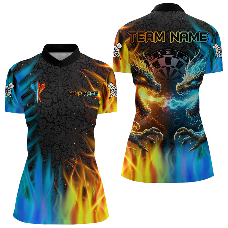 Personalized Dragon Water Fire 3D Dart Polo & Quarter Zip Custom Dart Shirts For Women Dart Jerseys TDM3213