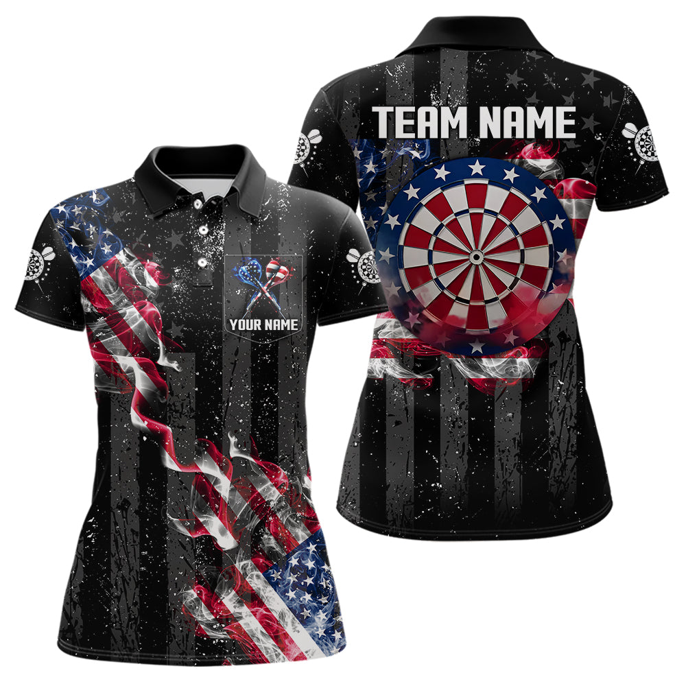 Custom US Flag Smoke Dart Shirt For Women, Patriotic Dart Jersey Pocket Option TDM3514