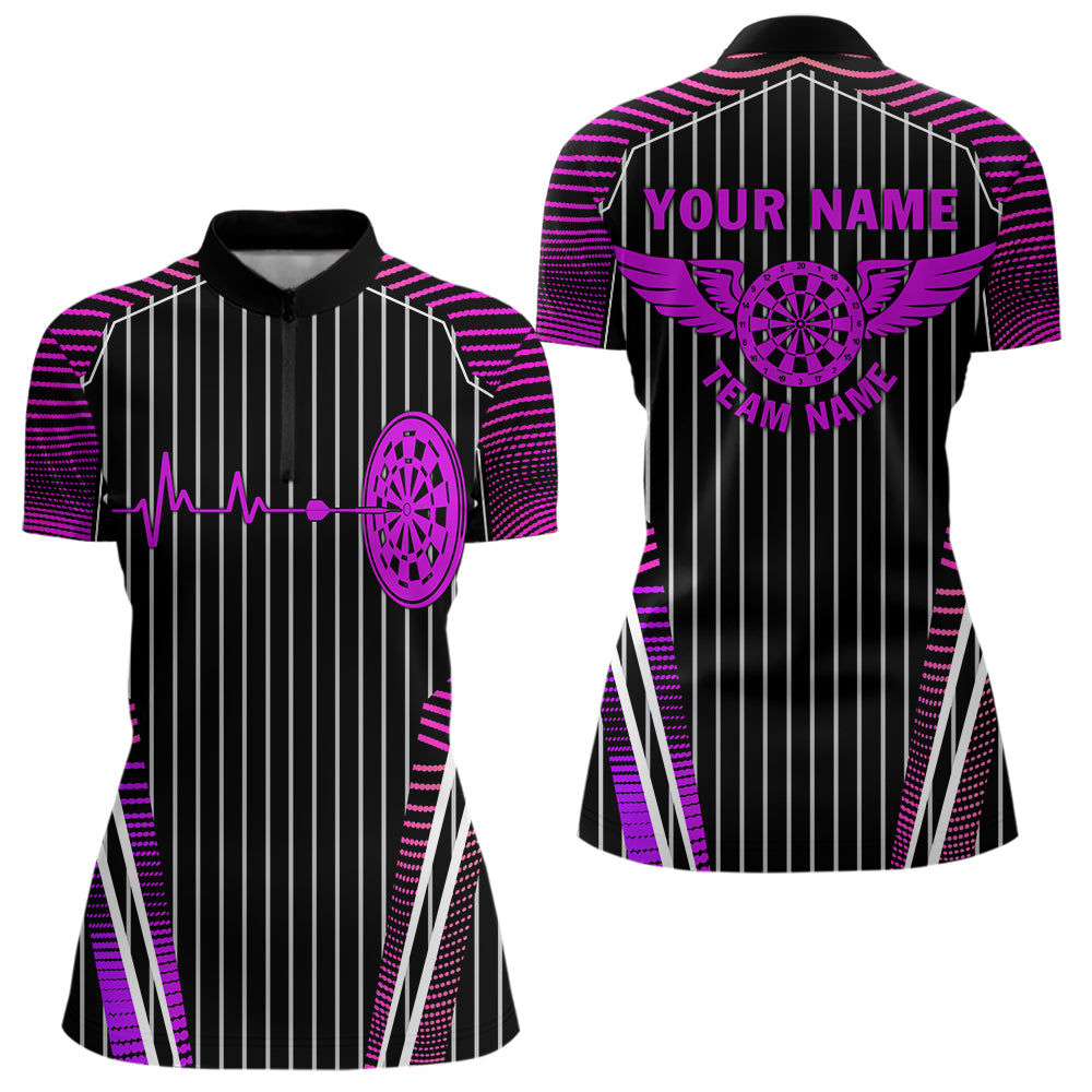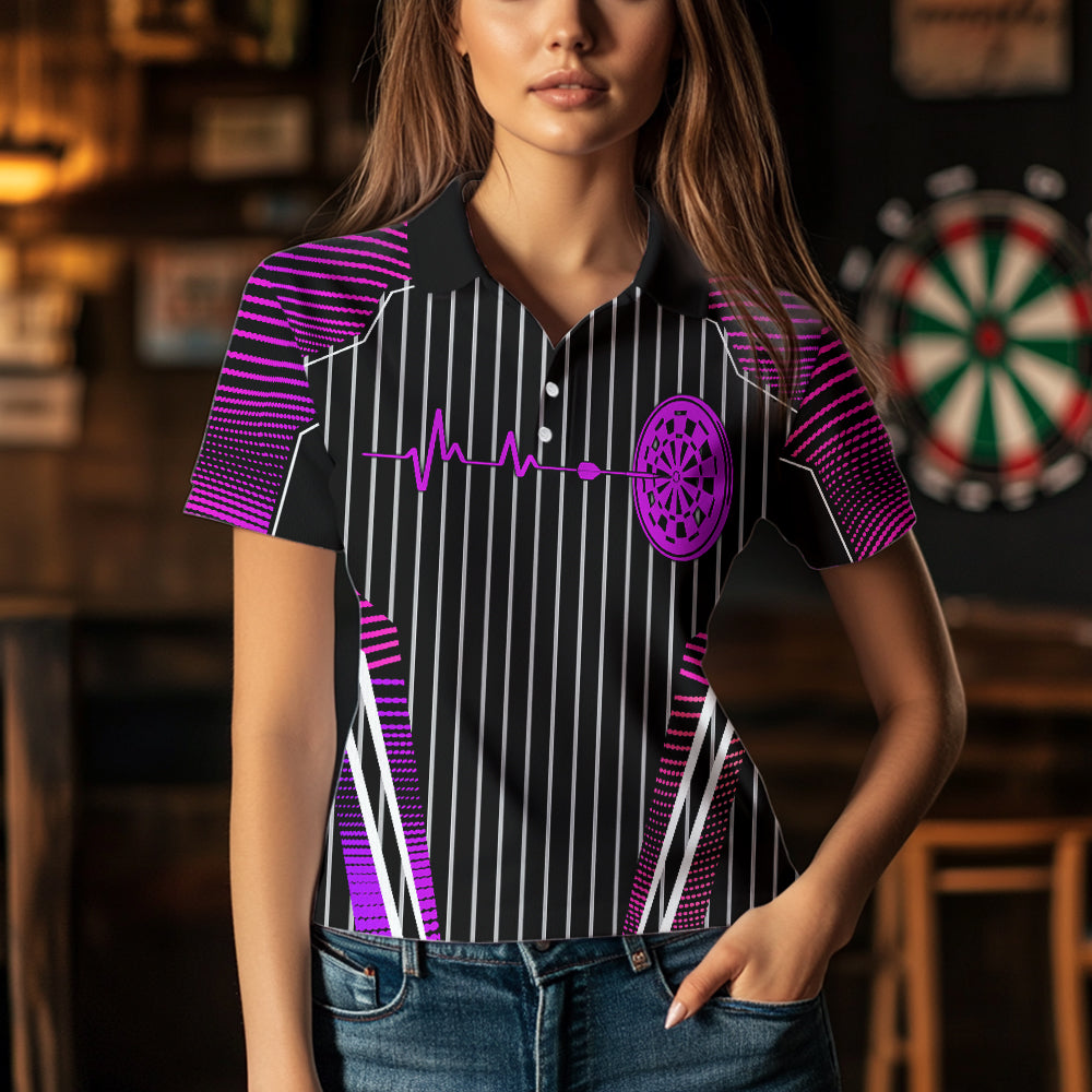 Neon Pink Dartboard Pulse Heartbeat Custom Women Dart Shirts, Funny Wings Cool Dart Team Jerseys TDM3525