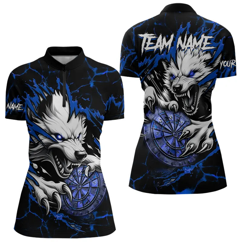 Personalized Wolf Lightning Darts Polo & Quarter Zip Custom Dart Shirts For Women Darts Jerseys |Blue TDM3610
