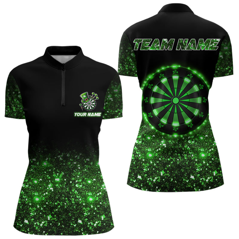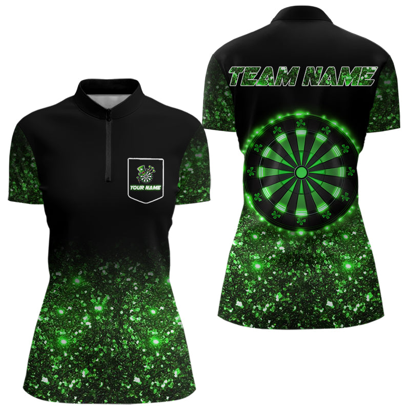 Custom Green Glowing Patrick Day Dart Shirts For Women, Shamrock Dart Jerseys TDM3612