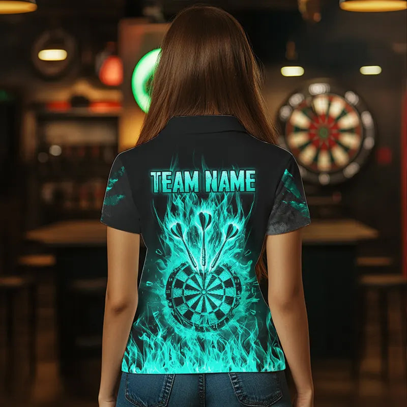 Fire Flame Darts Board American Flag Skull Dart Shirts For Women Custom Darts Team Jerseys |Turquoise TDM3648