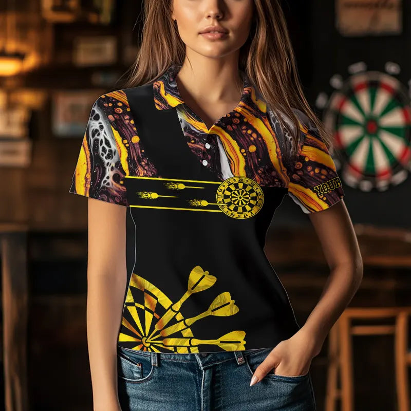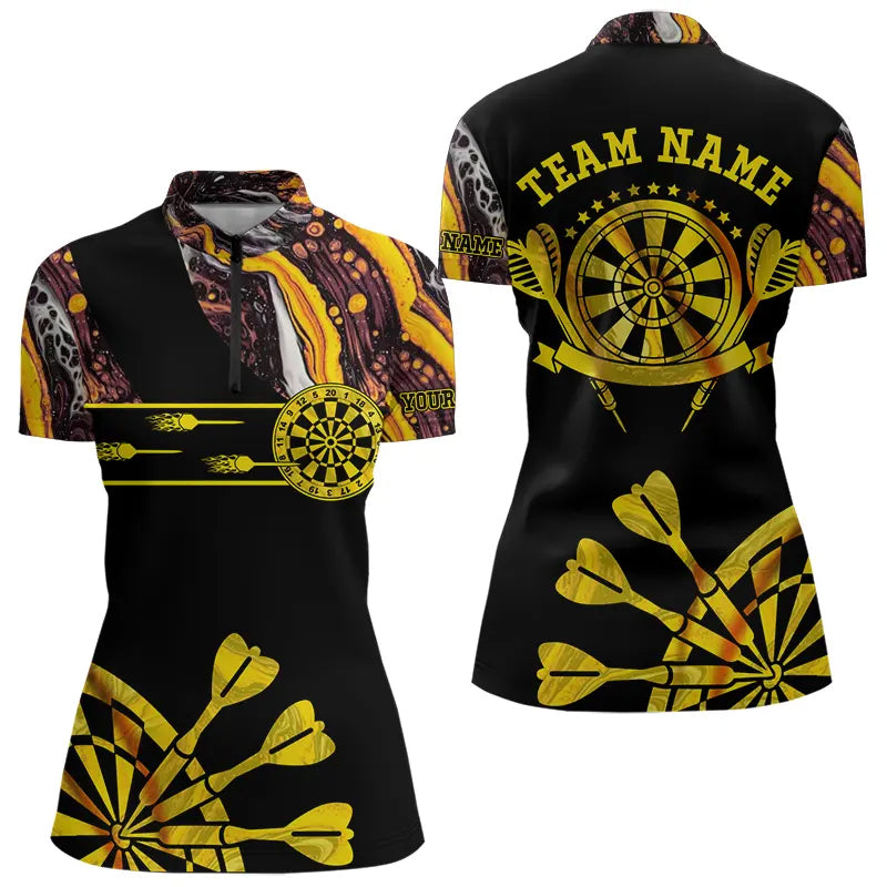 Yellow Golden Darts Tie Dye Polo & Quarter Zip Custom Dart Shirts For Women Glowing Dart Jerseys TDM3709