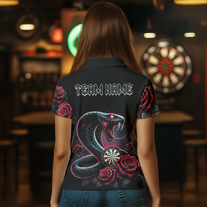 Personalized Rose And Dartboard Custom Cobra Snake Dart Shirt For Women, Dart Jerseys Polo & 1/4 Zip TDM3749