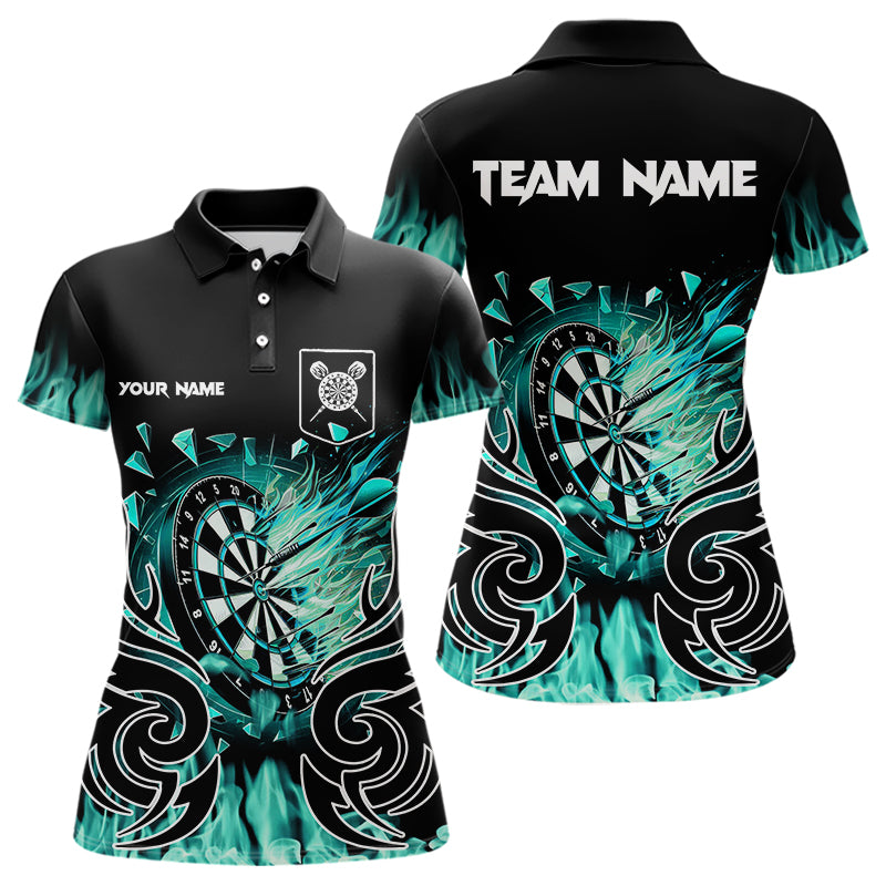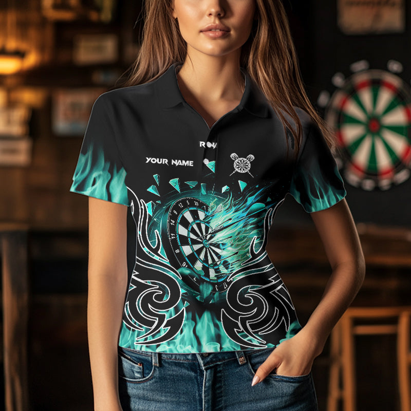 Custom Turquoise Tribal Flame Dart Shirt For Women, Dart Jersey Pocket Option TDM3795