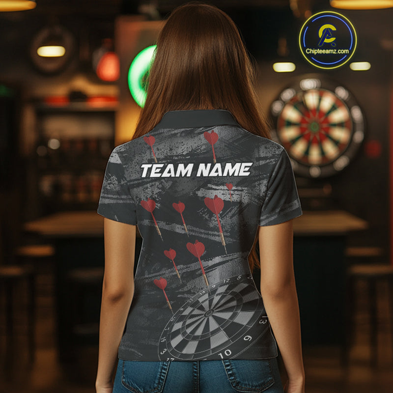 Black And Grey Grunge Dart Arrow Dart Shirts For Women Custom Dart Jerseys, Darts Team Shirts TDM3822