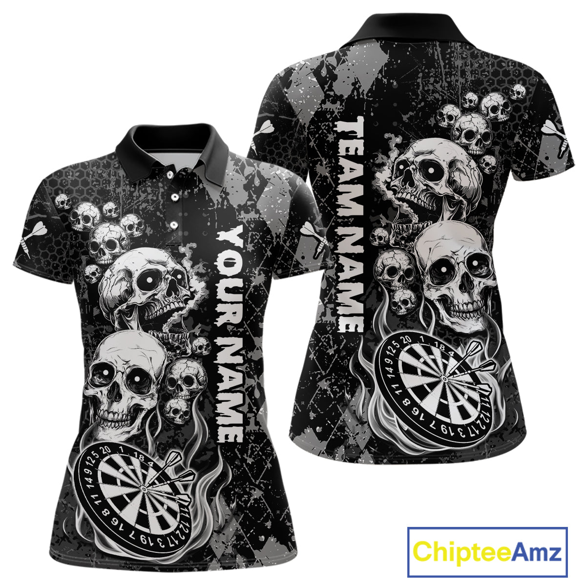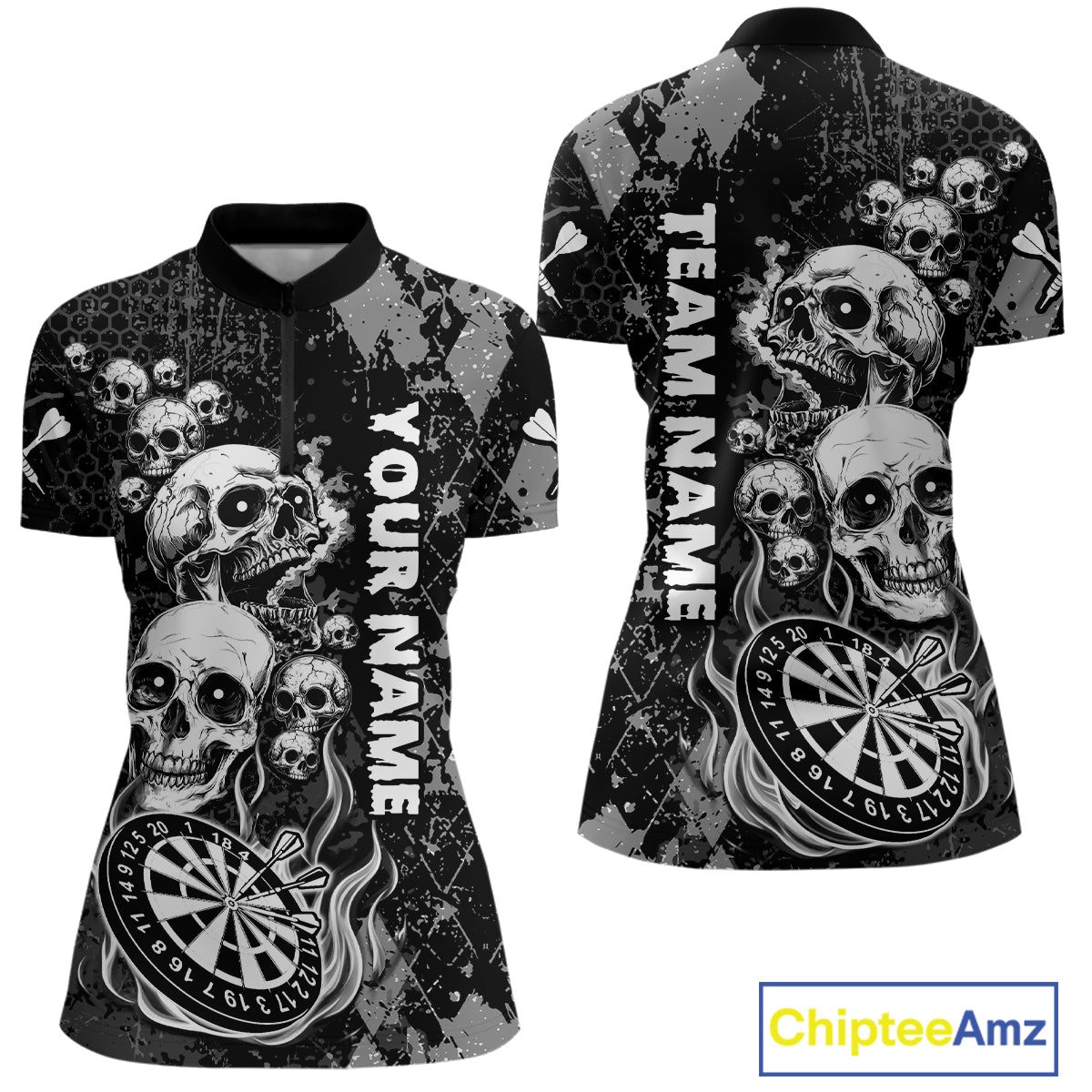 Black Grey Grunge Argyle Skull Dart Shirts Custom Women's Dart Jerseys Team Polo & Quarter Zip TDM3836