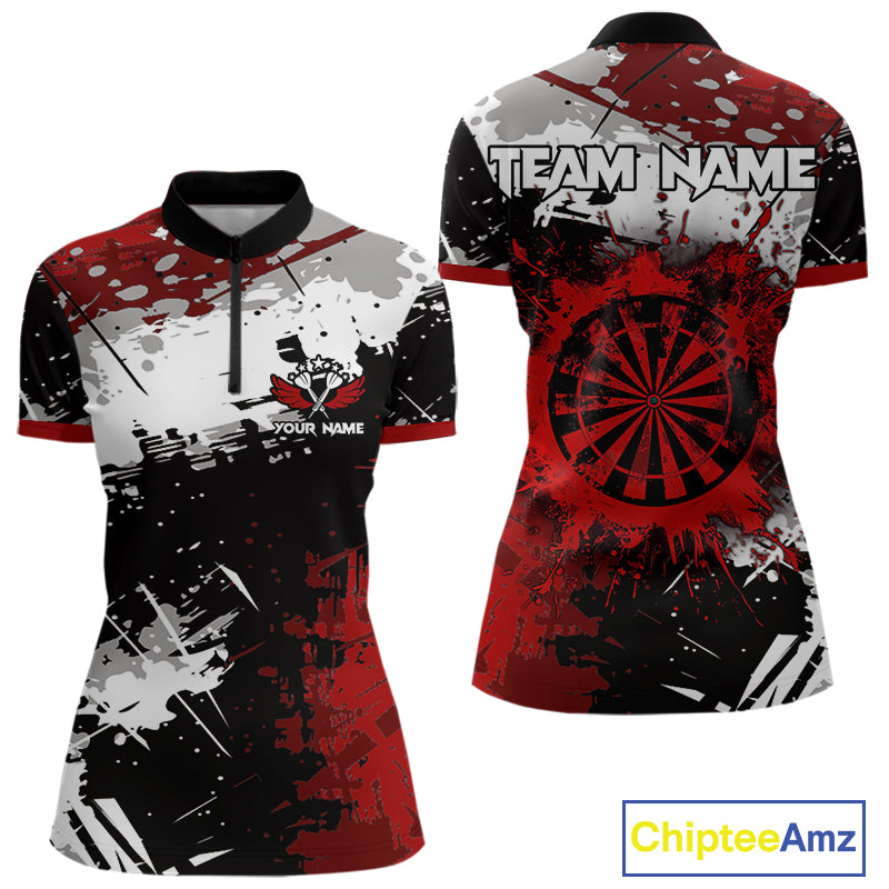 Red Grunge Paint Splash Dart Polo & Quarter Zip Custom Dart Shirts For Women Darts Team Jerseys  TDM3858