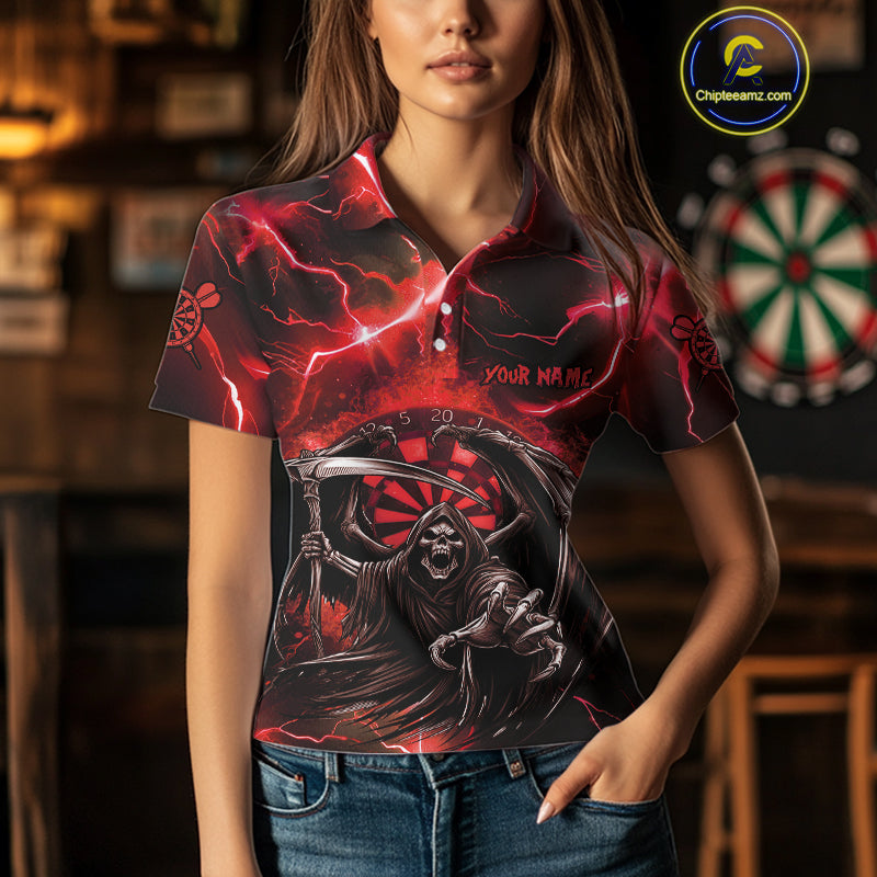 Red Grim Reaper Darts Shirt With Pocket Option For Women Custom Darts Jersey TDM3967