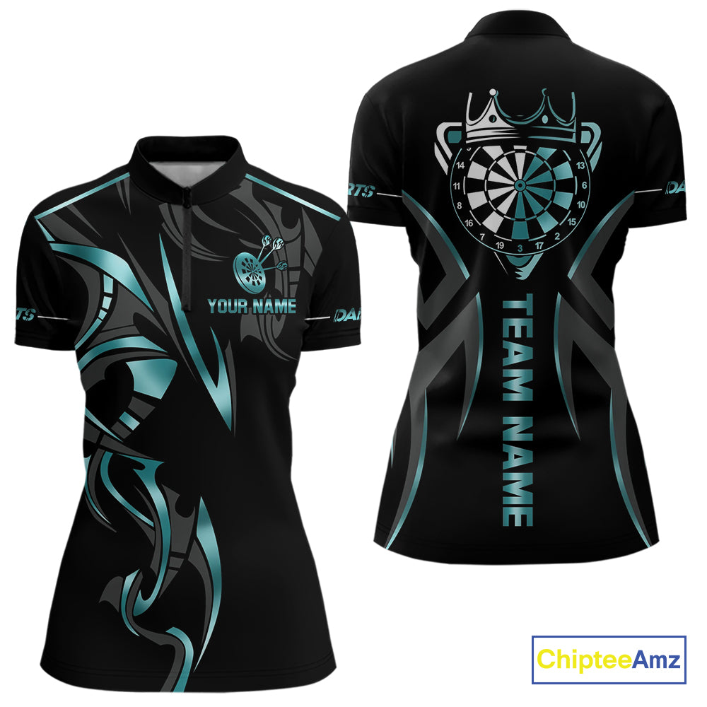 Black And Turquoise Dartboard Crown Dart Shirts For Women Custom Dart Jersey Team Polo & Quarter Zip TDM4061