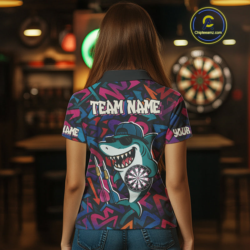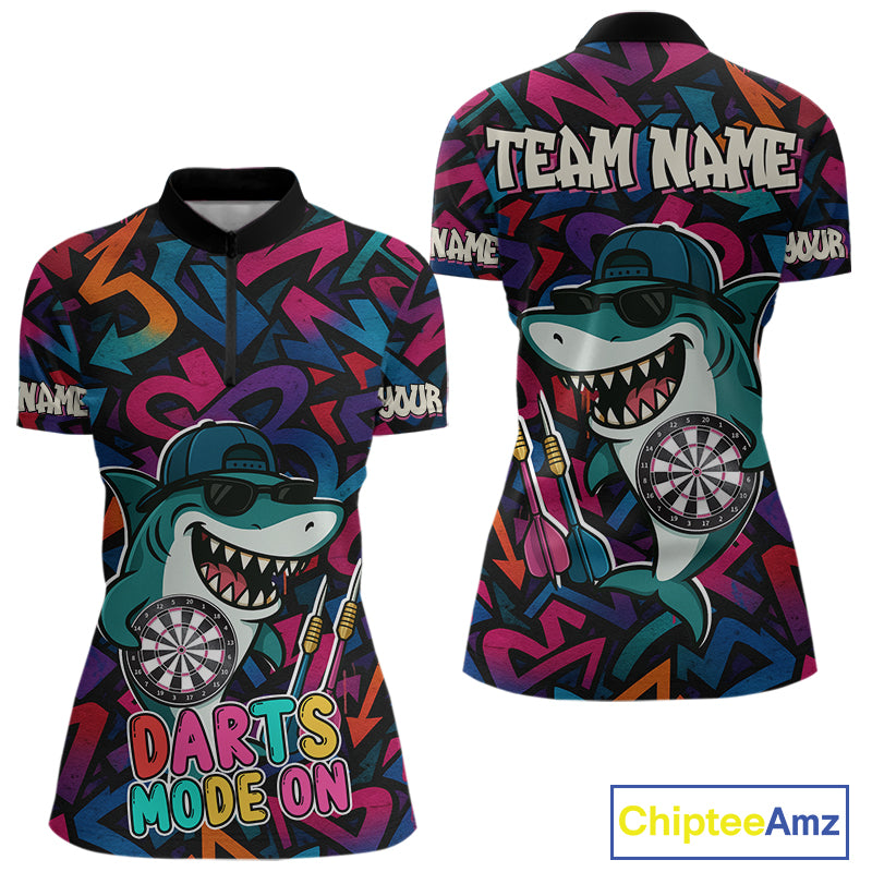 Darts Mode On Funny Shark Graffiti Style Custom Dart Shirts For Women, Dart Jersey Best Darts Outfit TDM4093