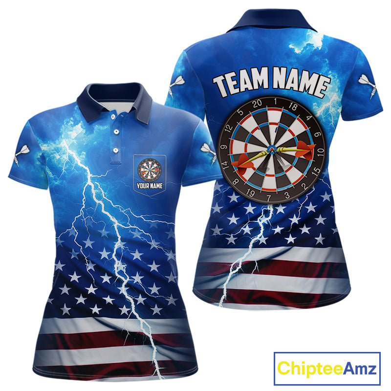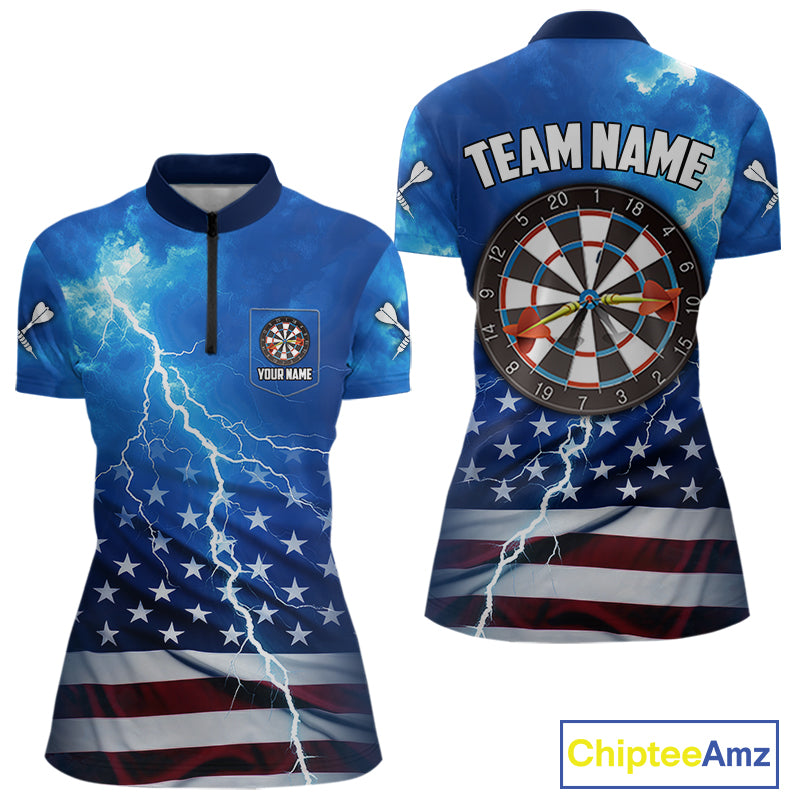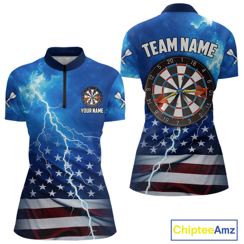 Blue Lightning US Flag Dart Shirt For Women Custom Dart Jersey Pocket Option TDM4114
