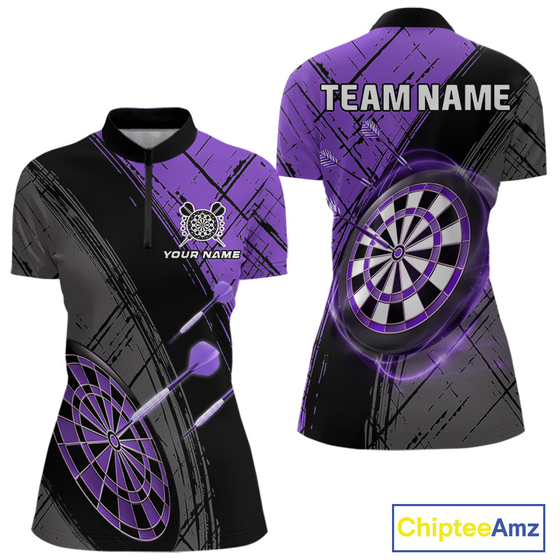 Grunge Purple Black Dartboard Light Women Dart Polo & 1/4 Zip Custom Dart Shirt For Team Dart Jersey TDM4126