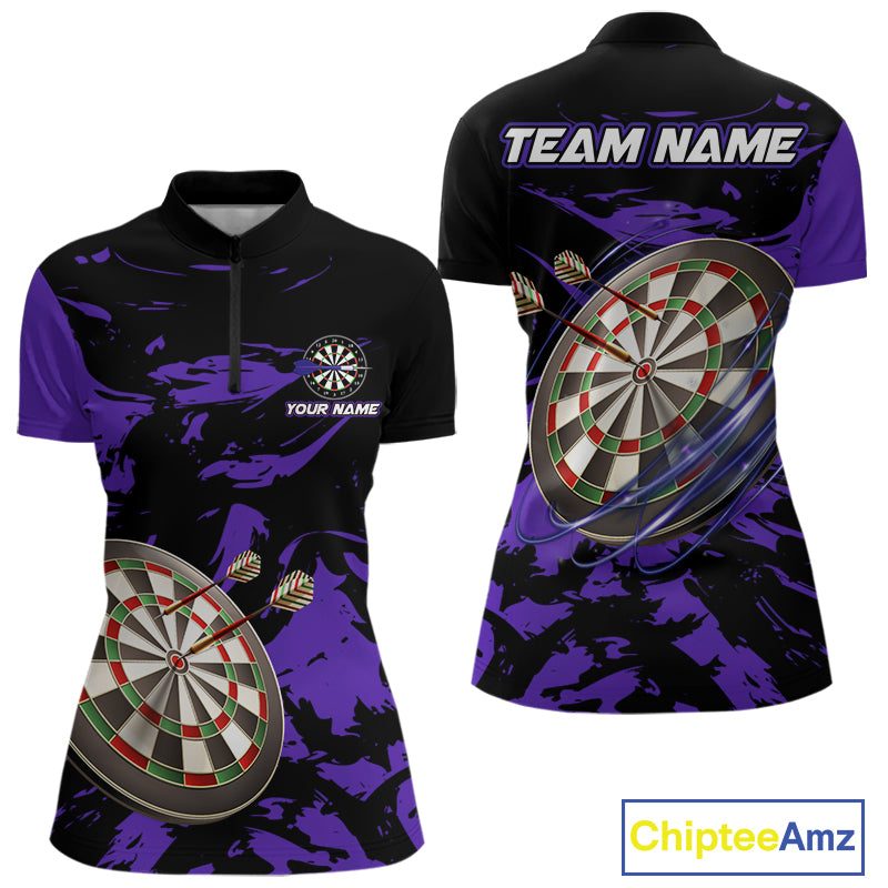 Personalized Black And Purple Splash Dart Polo & Quarter Zip Custom Dart Shirt For Women Dart Jersey TDM4169