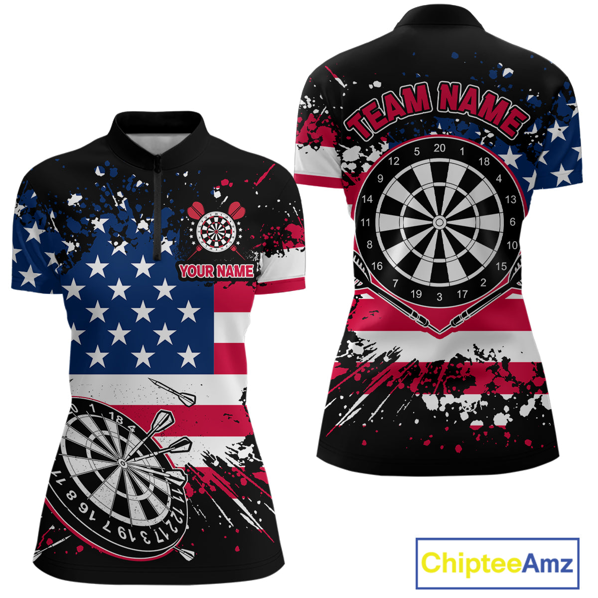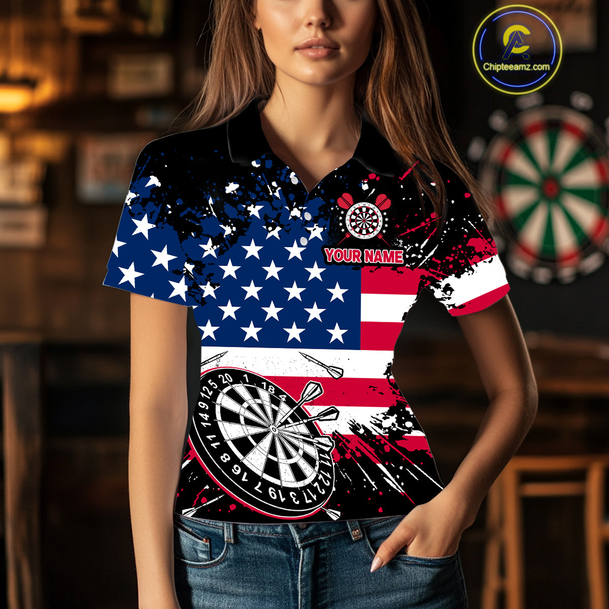 Personalized American Flag Darts Shirt For Women Custom Grunge Paint Splash Patriotic Dart Jersey TDM4171