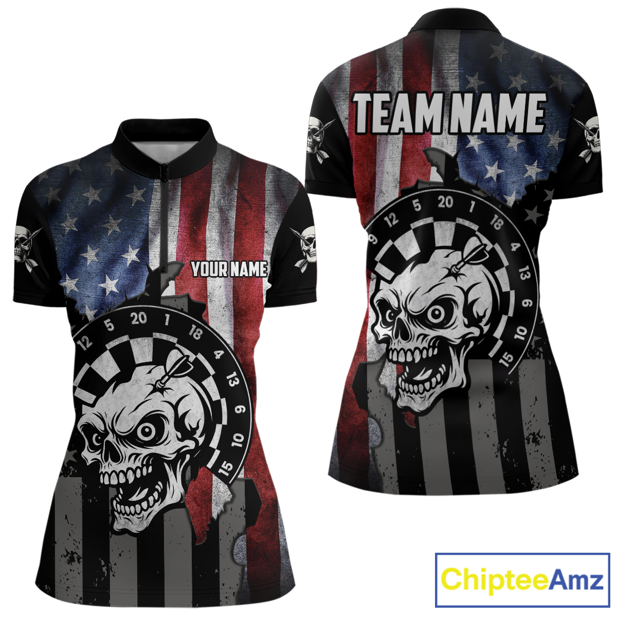 Personalized Funny Skull American Flag Dart Shirt For Women Custom Patriotic Darts Team Jerseys TDM4172