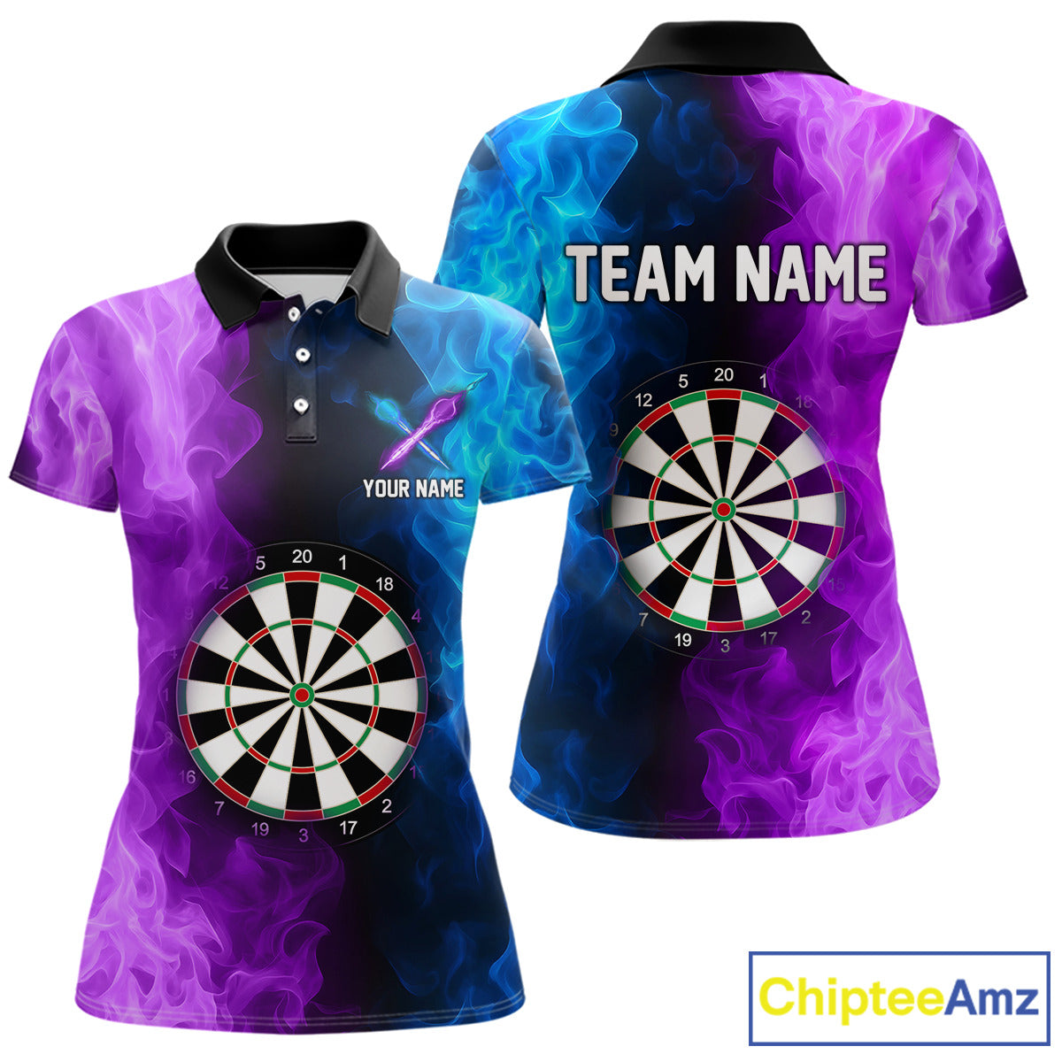 Blue And Purple Custom Fire Darts Shirt For Women, Personalized Darts Team Jersey Polo & 1/4 Zip TDM4207