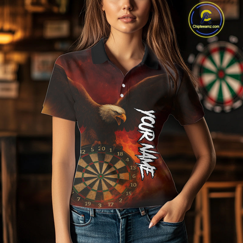 Personalized Fire Flame Eagle Dart Shirts For Women Custom Darts Team Jersey Polo & Quarter Zip TDM4209