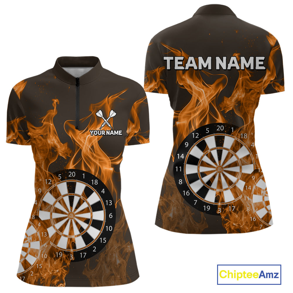 Orange Flaming Dartboard Darts Polo & Quarter Zip Custom Dart Shirts For Women Team Dart Jerseys TDM4229
