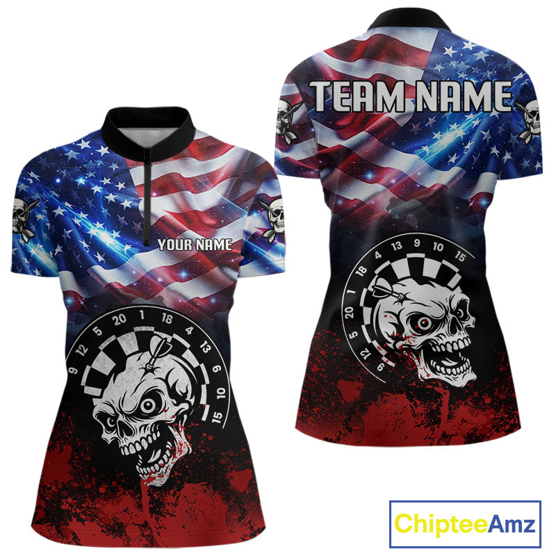 Personalized American Flag Funny Skull Darts Shirt For Women Custom Patriotic Darts Team Jerseys TDM4262