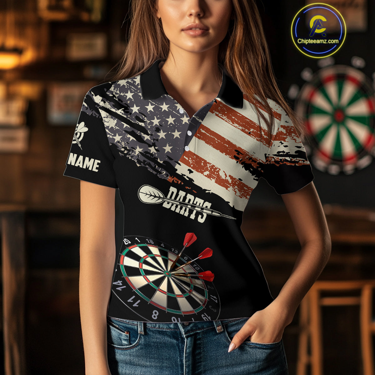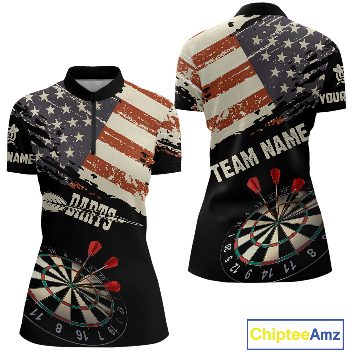 Grunge Vintage American Flag Custom Retro Dart Shirts For Women, Pride Team Patriotic Dart Jerseys TDM4266