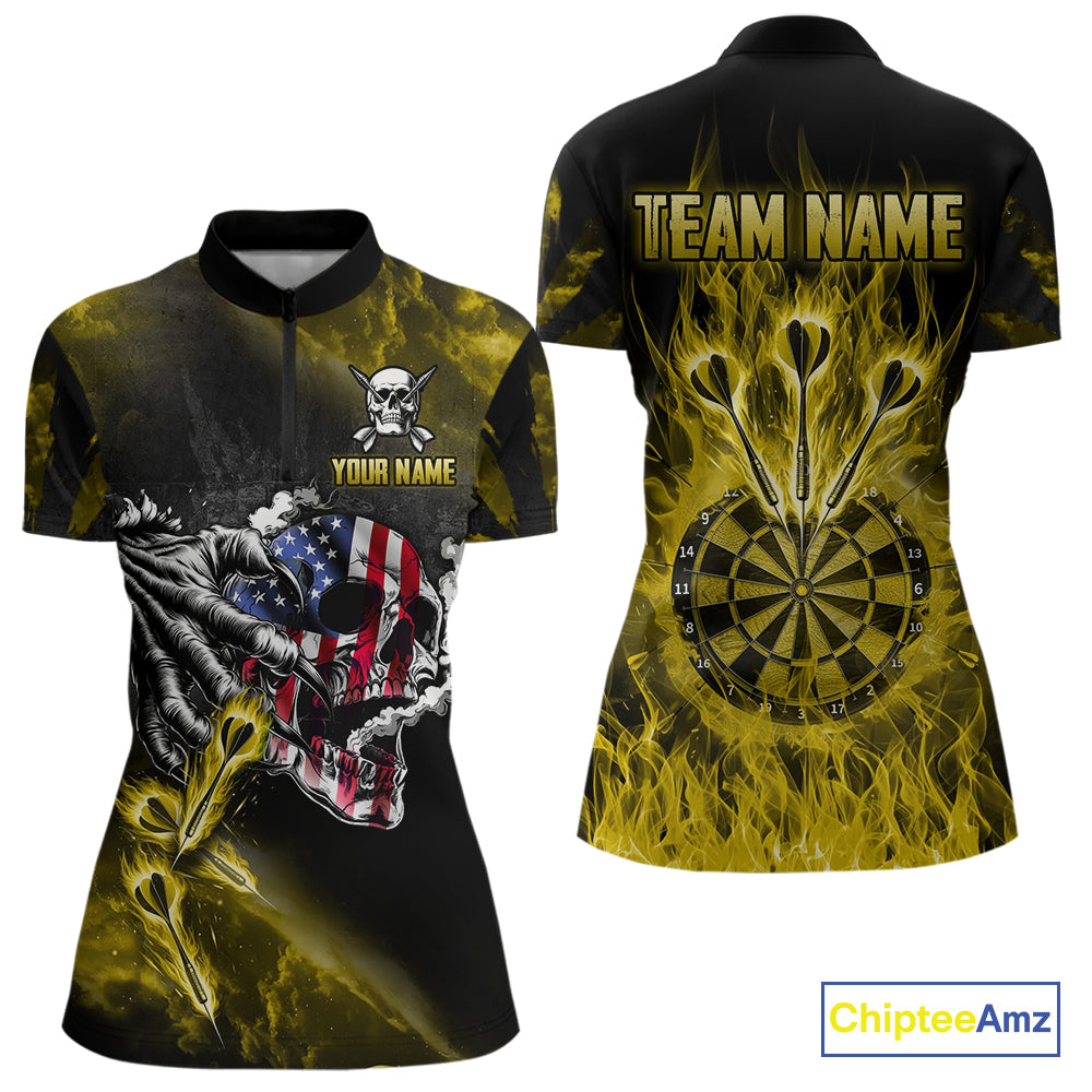 Fire Flame Darts Board American Flag Skull Dart Shirts For Women Custom Darts Team Jerseys |Yellow TDM4268
