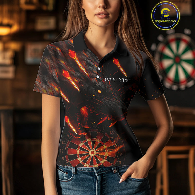 Black And Orange Panther Fire Dart Shirt For Women Custom 3D Dart League Team Jersey Polo & 1/4 Zip TDM4269
