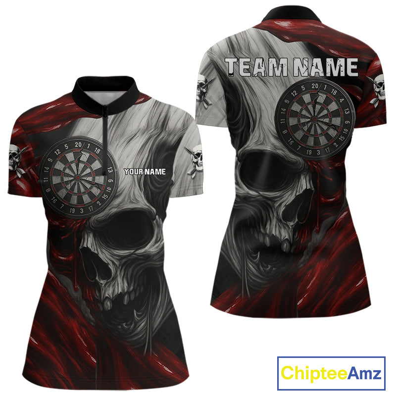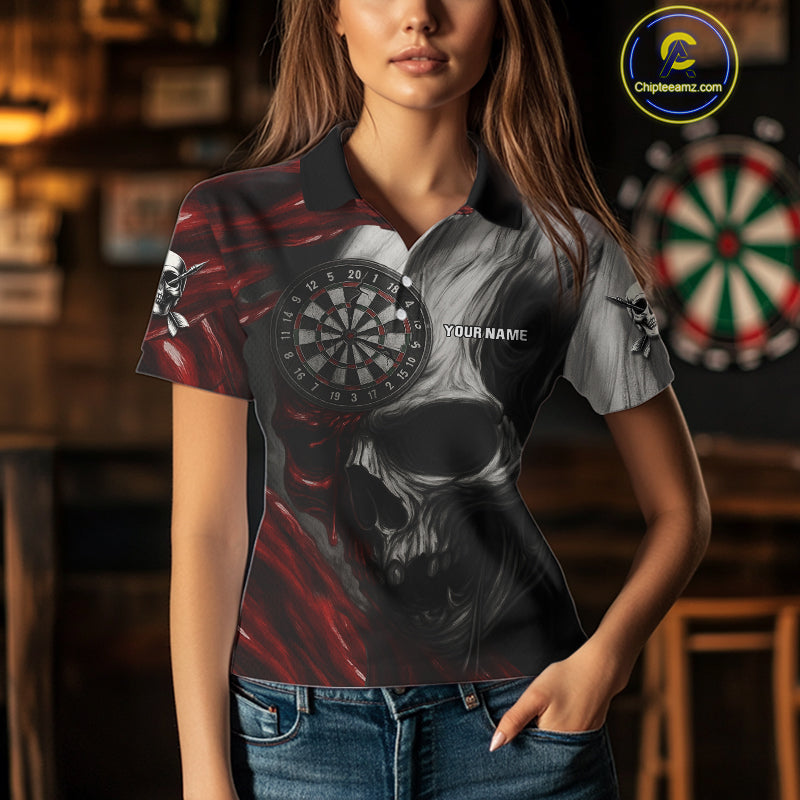 Personalized Gothic Skull Darts Shirt For Women Custom Darts Jersey Team Uniform Polo & 1/4 Zip|Red TDM4379
