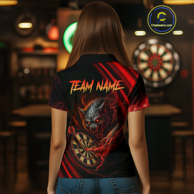 Personalized Red Thunder Lightning Wolf Darts Shirt For Women Custom Dart Team Jersey Polo & 1/4 Zip TDM4383