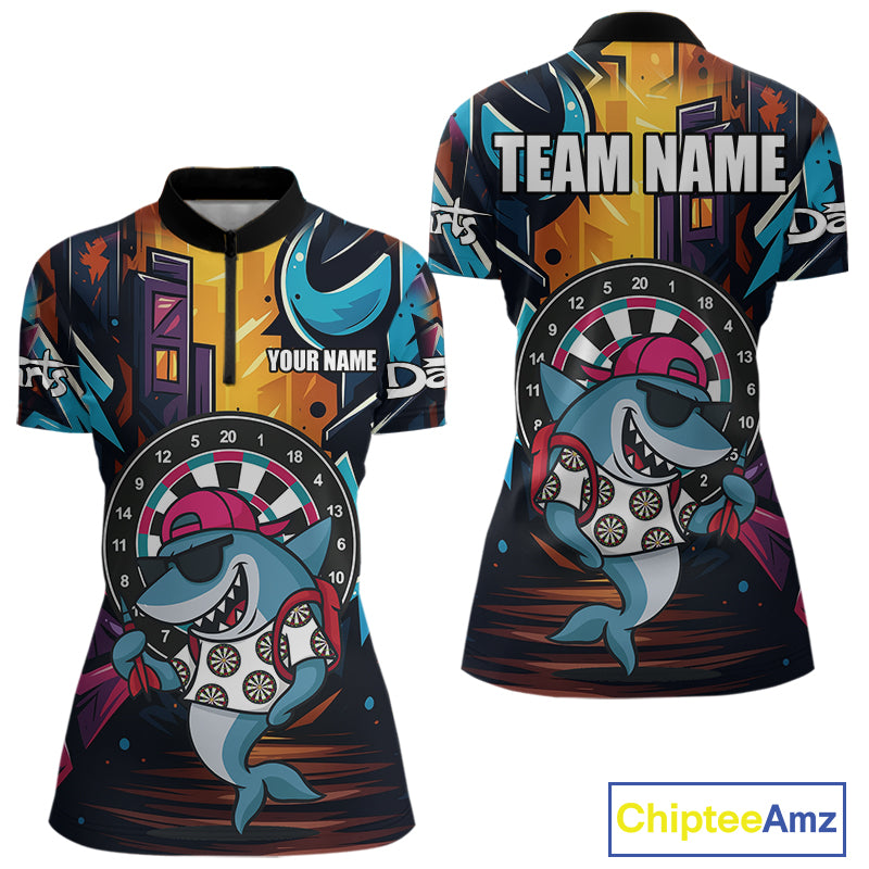 Funny Shark Colorful Graffiti Style Custom Dart Shirts For Women, Dart Team Jersey Best Darts Outfit TDM4423