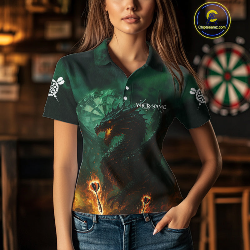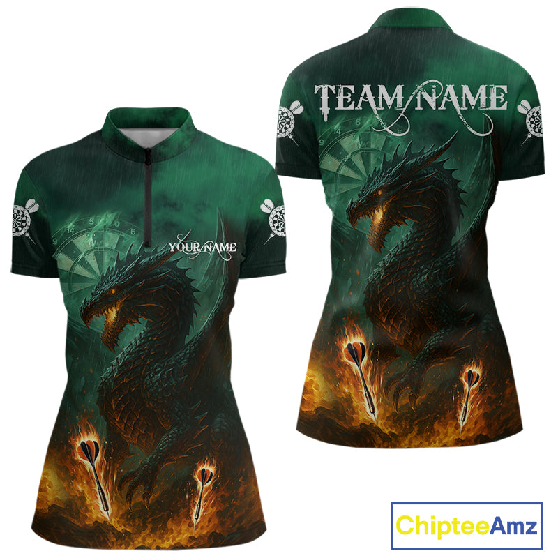 Personalized Fiery Arrow Dragon Green Darts Shirt For Women Custom Darts Jersey Team Polo & 1/4 Zip TDM4450