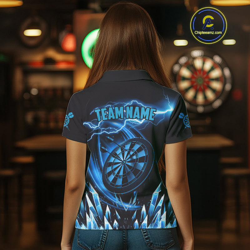 Personalized Blue Icy Lightning Darts Shirt For Women Custom Dart League Team Jersey Polo & 1/4 Zip TDM4465