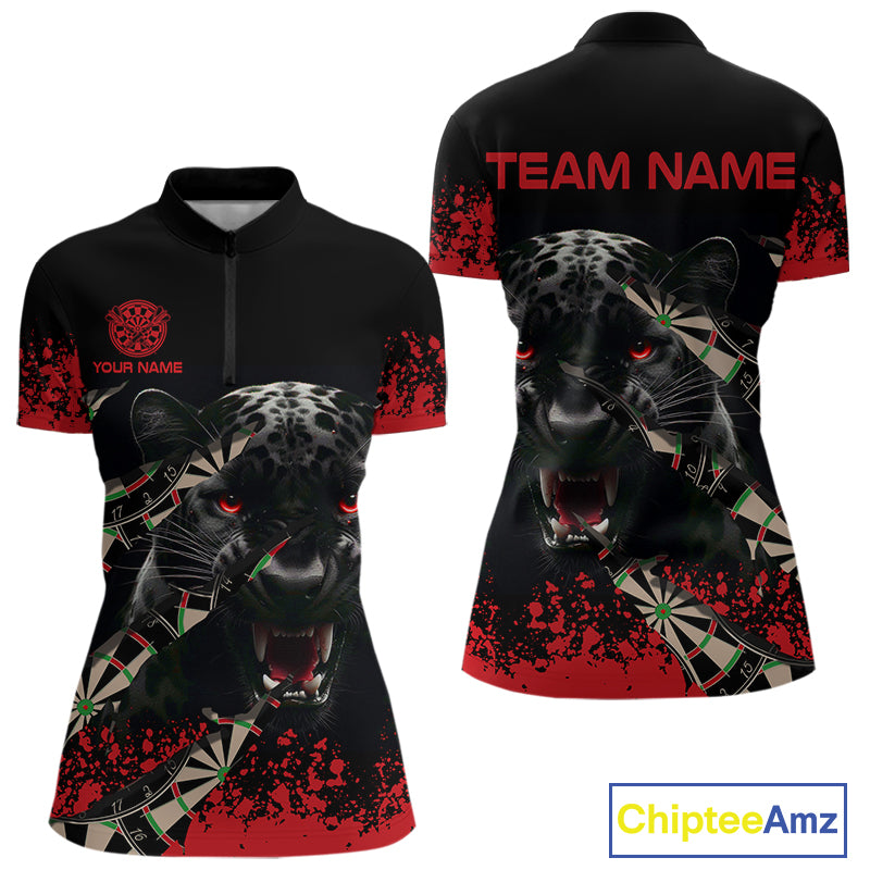 Grunge Black And Red Panther Dart Shirt For Women Custom Dart Jersey Team Polo & Quarter Zip TDM4485