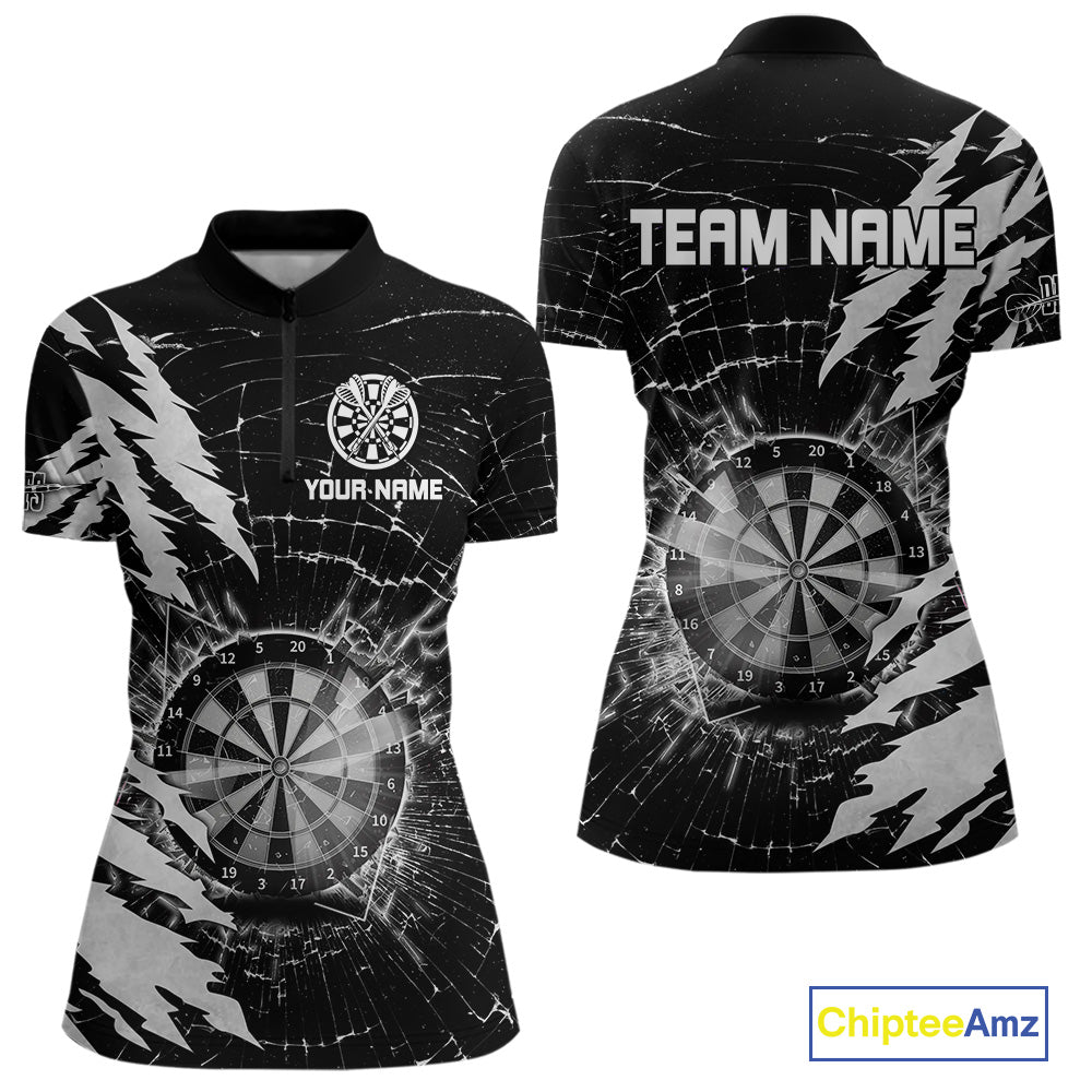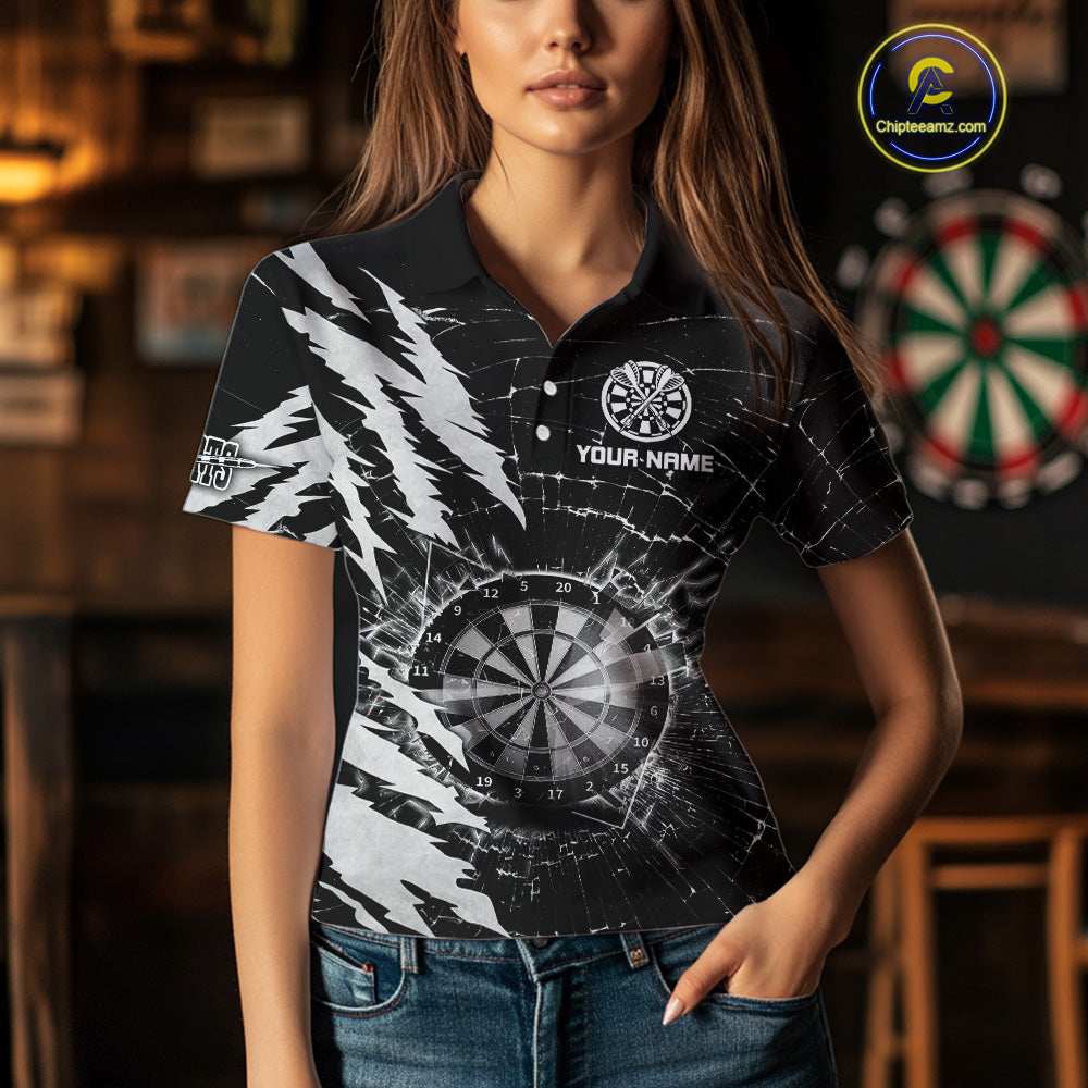 White Black Darts Board Break Glass Custom Dart Shirts For Women, Darts Team Shirts Dart Jersey TDM4522