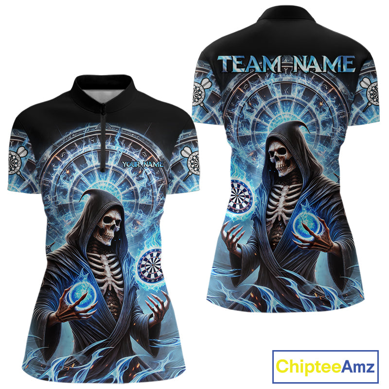 Funny Blue Icy Dartboard Grim Reaper Shirt Custom Darts Jersey Team Polo & 1/4 Zip For Women TDM4527